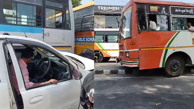 उत्तर प्रदेश रोडवेज की बस सहारनपुर की ओर से आ रही थी। उसके आगे एक कार थी। बस के बगल में एक कार चल रही थी। ढाल पर गति तेज होने के कारण बस चालक ने कार को बचाने का प्रयास किया तो उसने आगे चल रही उत्तराखंड रोडवेज की बस को टक्कर मार दी।देहरादून के मोहब्बेवाला में चंद्रबनी चौक के पास हादसा हो गया। यहां एक के बाद एक चार वाहन आपस में टकरा गए। इनके एक उत्तराखंड रोडवेज, दूसरी उत्तर प्रदेश रोडवेज की बस और एक कार व एक स्कूल बस शामिल है। हादसे में कोई घायल नहीं हुआ।प्रत्यक्षदर्शियों ने बताया कि बुधवार दोपहर उत्तर प्रदेश रोडवेज की बस सहारनपुर की ओर से आ रही थी। उसके आगे एक कार थी। बस के बगल में एक कार चल रही थी। ढाल पर गति तेज होने के कारण बस चालक ने कार को बचाने का प्रयास किया तो उसने आगे चल रही उत्तराखंड रोडवेज की बस को टक्कर मार दी। इसी बीच एक कार और एक स्कूल बस में भी टक्कर हुई।एसएचओ पटेलनगर हरिओम राज चौहान ने बताया कि घटना में कार सवार को हल्की चोट आई है। सभी वाहनों को सड़क से हटाकर यातायात सामान्य कराया गया था।