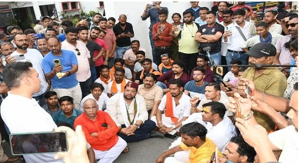 संगठन के लोग एसएसपी को बुलाने की मांग कर रहे थे। एसएसपी के नहीं आने पर संगठन के लोगों ने पुलिस बहुउद्देशीय भवन के सामने ही हनुमान चालीसा का पाठ शुरू कर दिया। इस कारण पुलिस असहज नजर आई। इस दौरान सीओ सिटी नितिन लोहनी ने प्रदर्शनकारियों की एसएसपी से बात भी कराई लेकिन वे नहीं माने। उन्होंने साफ कहा कि जब तक एसएसपी मौके पर आकर आश्वासन नहीं देते हैं, तब तक वह मौके पर बैठे रहेंगे।